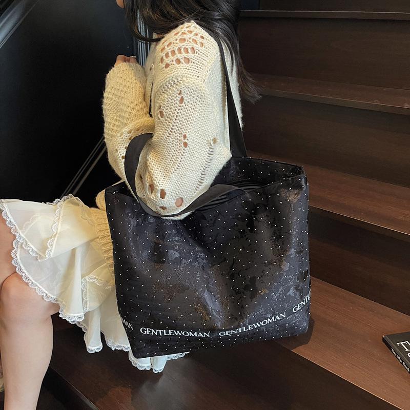 Женская большая холщовая сумка-тоут - Универсальная, широкий плечевой ремень для студентов и поездок на работу чёрный