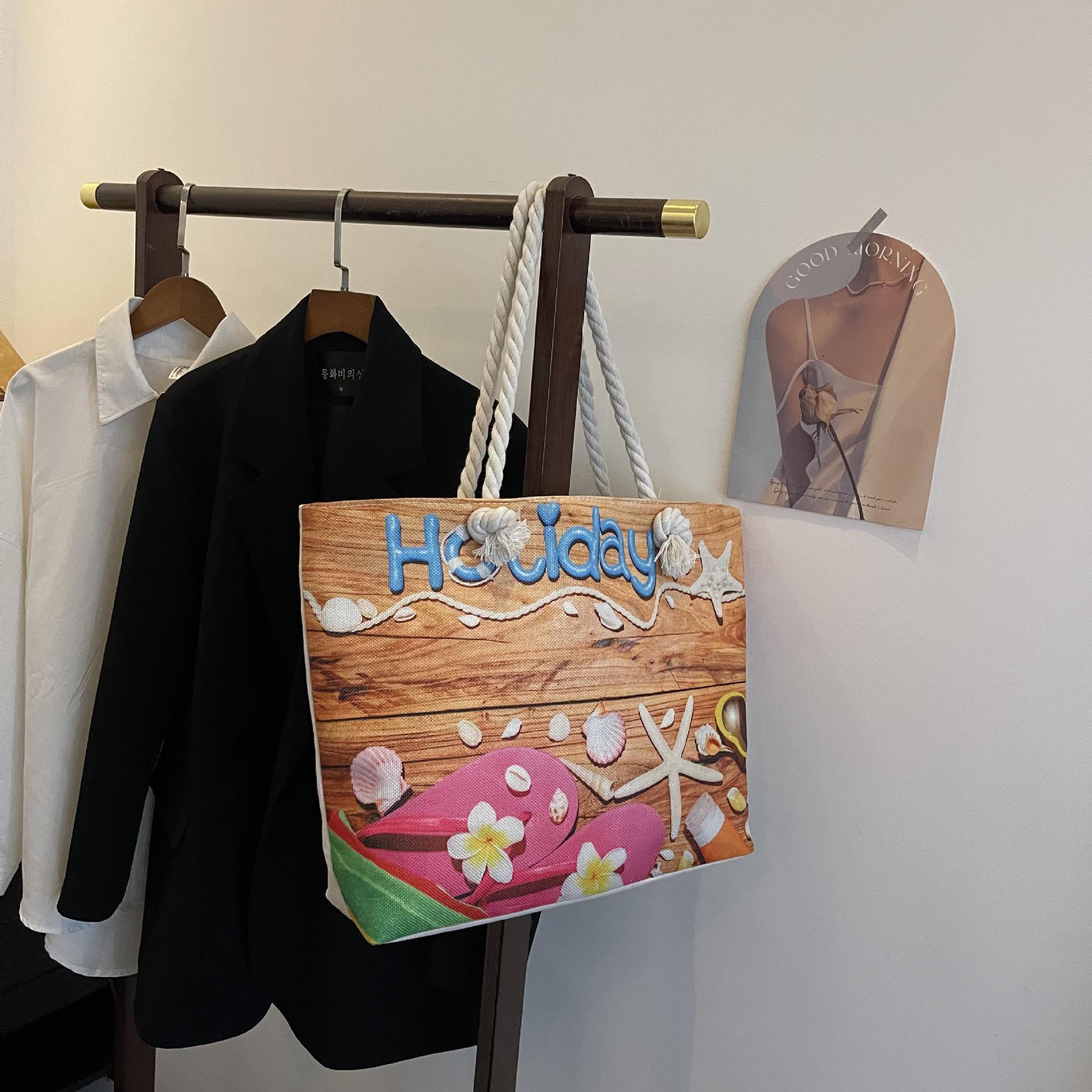 Женская большая холщовая сумка-тоут - стильная льняная пляжная и дорожная сумка Pattern five