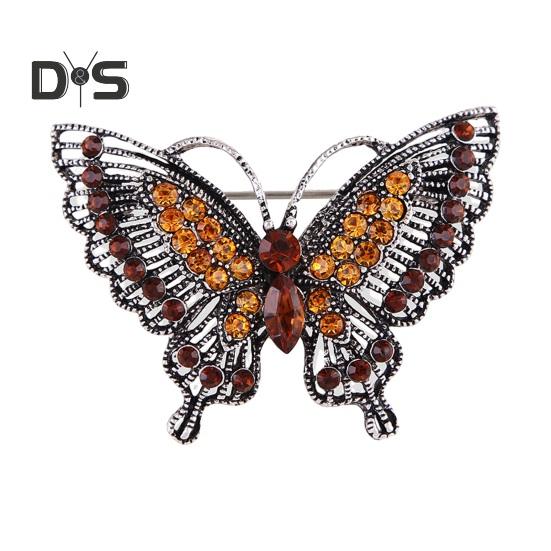 Женская брошь в стиле ретро в форме полой бабочки со стразами, декоративная противоскользящая износостойкая прищепка для воротника пальто, шляпы, шарфа, украшения для выпускного вечера кофейный