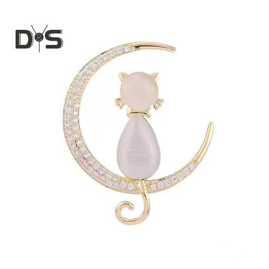 Женская брошь в форме кошки в форме луны, стразы, инкрустация булавкой из искусственного опала, костюм, воротник, шаль, шарф, значок, аксессуары для костюма золотистый