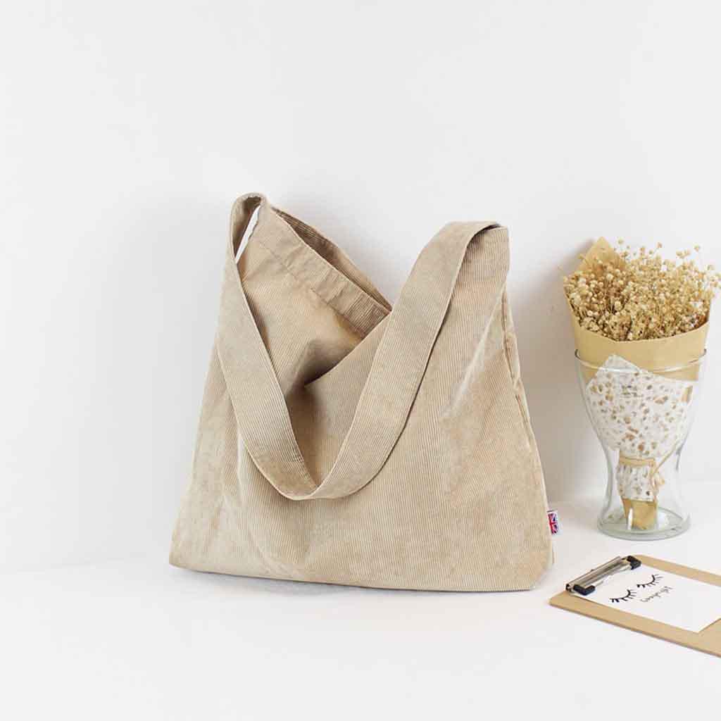 Женская вельветовая холщовая сумка, однотонная сумка для покупок на плечо, повседневная сумка-тоут хаки