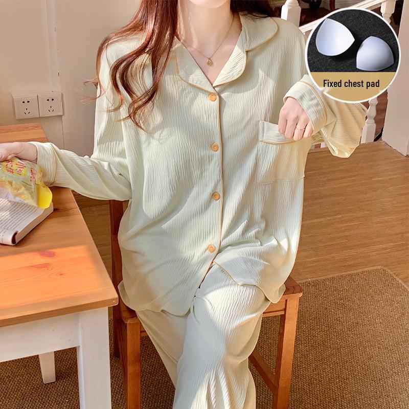 Женская весенне-осенняя креповая пижама - милая с длинным рукавом и нагрудными вкладышами, легкая и свободного кроя M