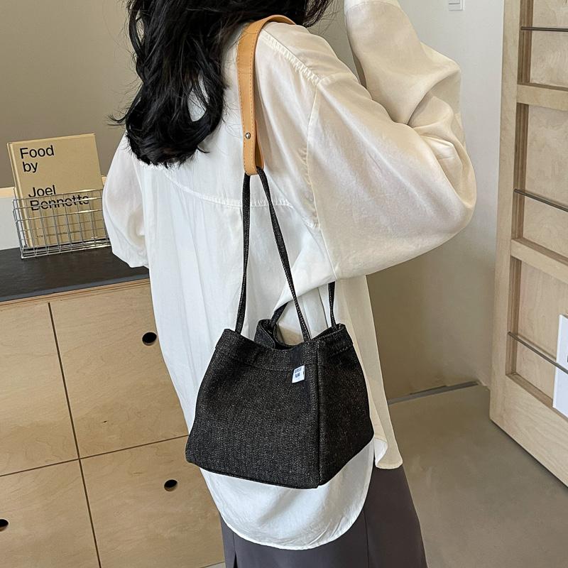 Женская винтажная сумка на плечо, большая вместительная джинсовая повседневная сумка-тоут со съемным ремешком, простая сумка на ремне, женская повседневная сумка для свиданий чёрный