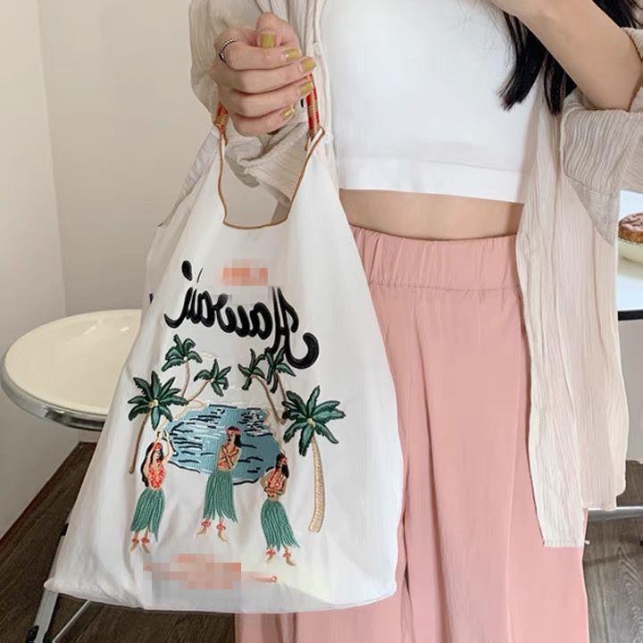 Женская вышитая складная холщовая сумка-тоут через плечо большой вместимости Medium