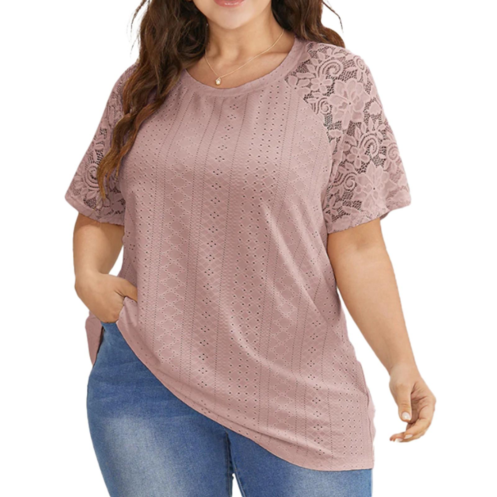 Женская вязаная дышащая футболка с круглым вырезом и полым цветком больших размеров