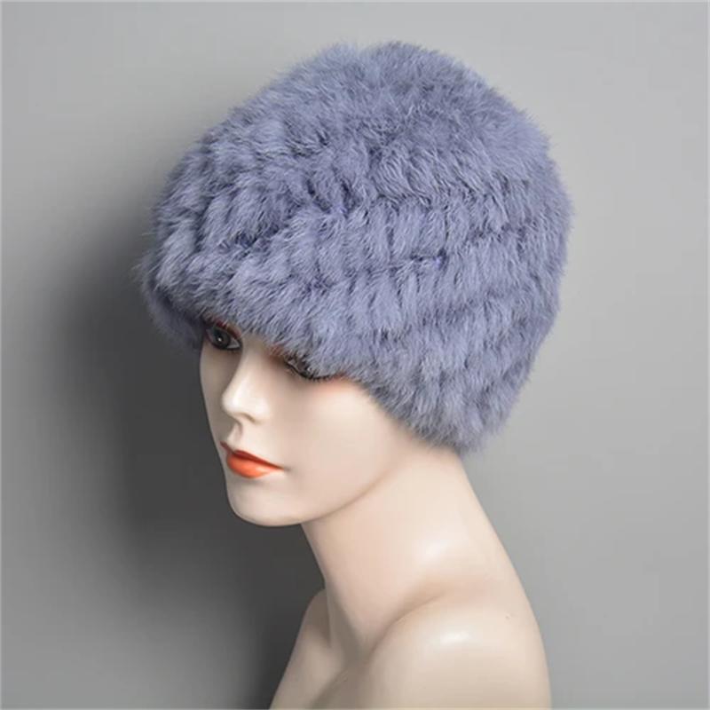 Женская вязаная шапка из натурального кроличьего меха, теплая меховая шапка, зимняя зимняя уличная шапка из натурального меха ONE SIZE синий белл