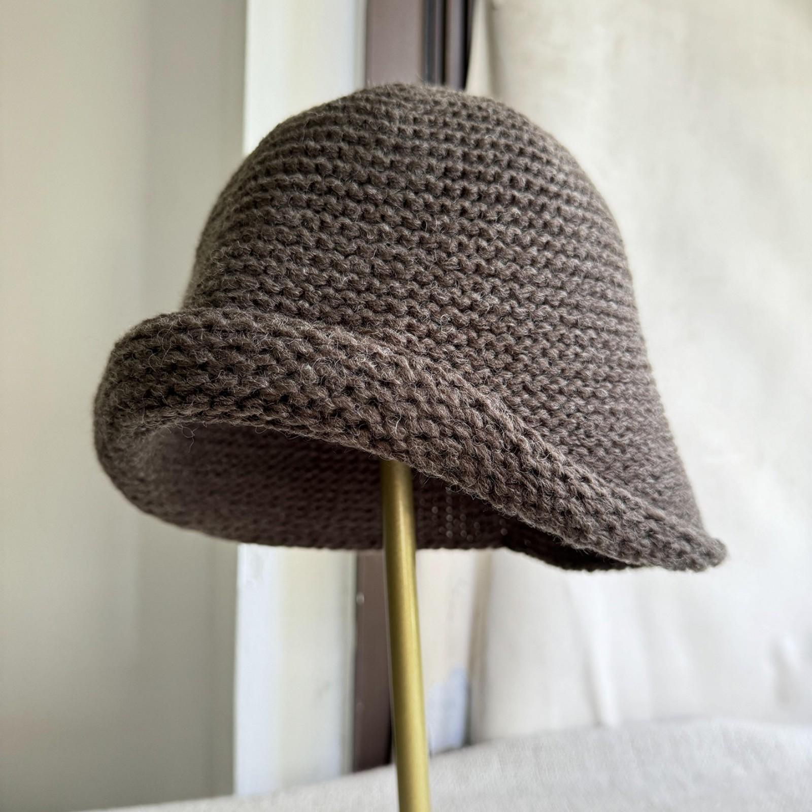 Женская вязаная шерстяная шляпа-ведро с подвернутыми краями, зимняя теплая шляпа-рыбак, шерстяная шляпа-колокол большого размера по окружности головы One Size кофейный