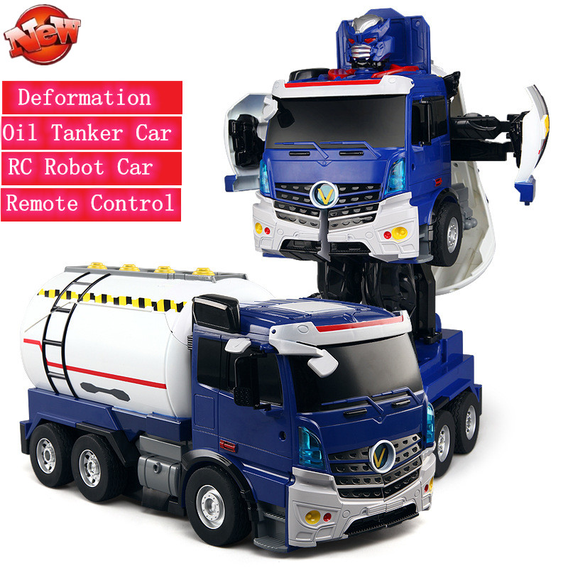 One Key Deformation RC Truck Oil Tanker Robot Car Remote Control Stunt Car Smart Voice Control Toy With LED Light Sound effect, Blue