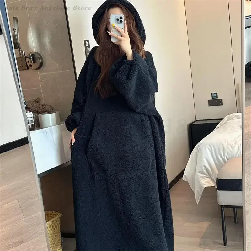 Женская длинная ночная рубашка с капюшоном, осенне-зимняя фланелевая одежда для сна большого размера, ночная рубашка, теплая толстая домашняя одежда из кораллового флиса, домашняя одежда