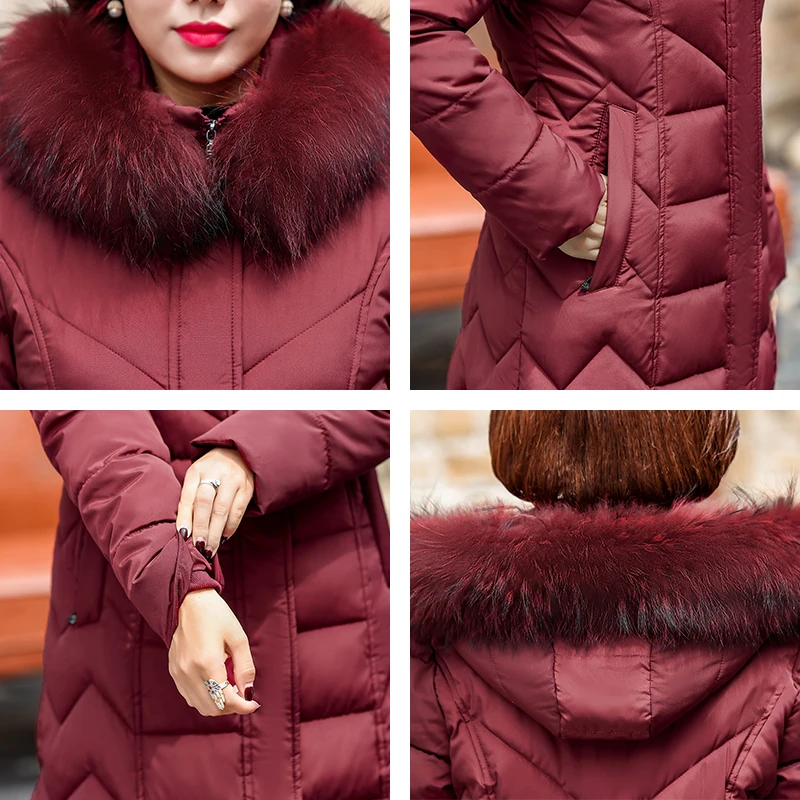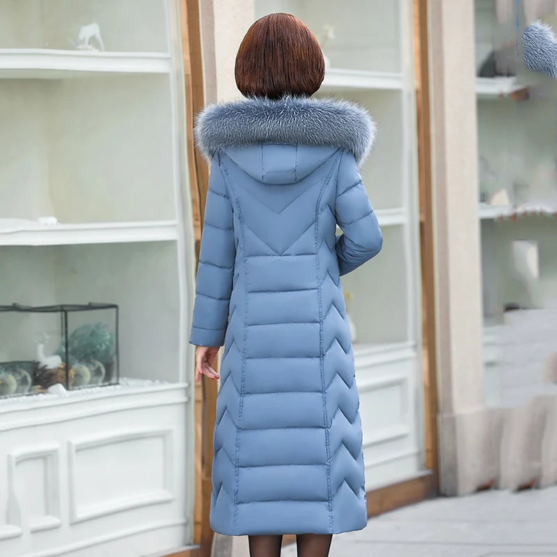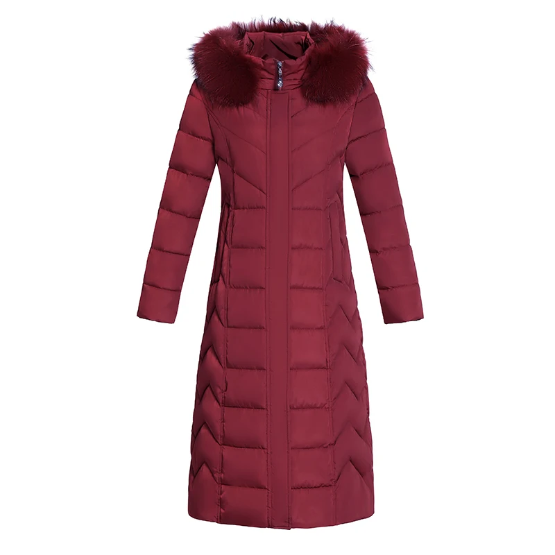 Женская длинная приталенная куртка, офисное однотонное Женское зимнее пальто с капюшоном и меховым воротником, толстая верхняя одежда, пар...