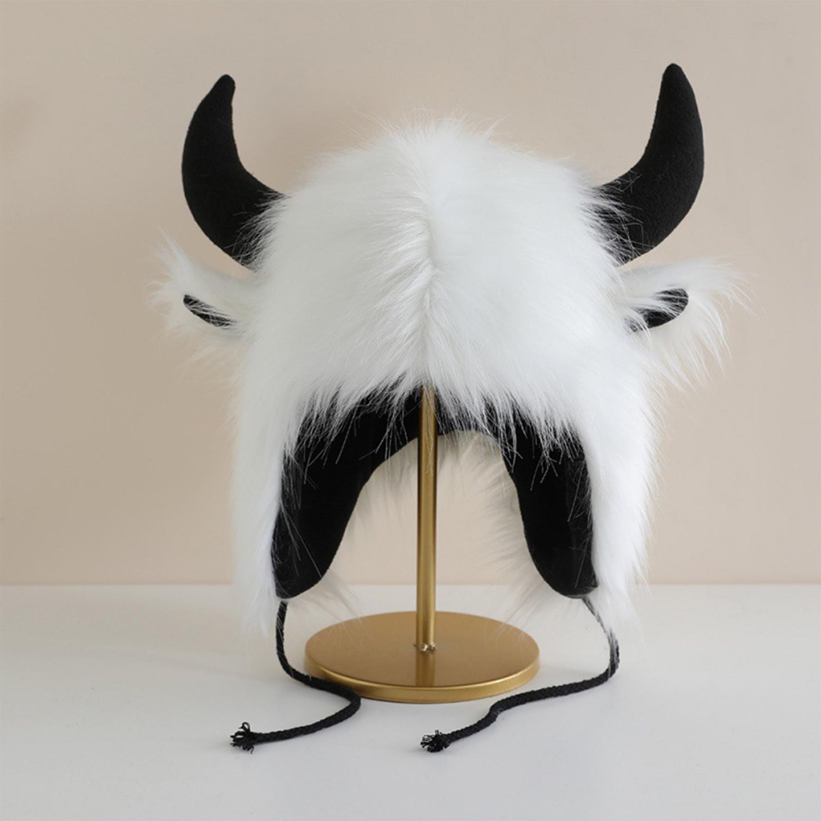 Женская забавная плюшевая шапка-ушанка с коровьей головой, теплая, ветрозащитная и холодостойкая шапка для велоспорта One Size белый