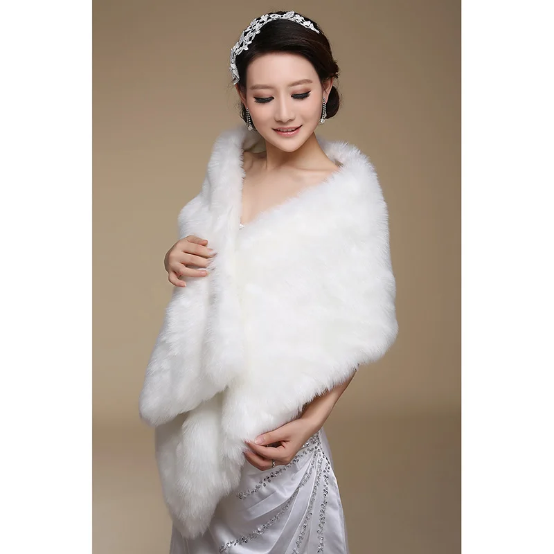 Женская зимняя длинная шаль из искусственного меха для невесты, Свадебные палантины, Теплые Свадебные палантины из искусственного меха, свадебная шаль, вечерняя Женская шаль