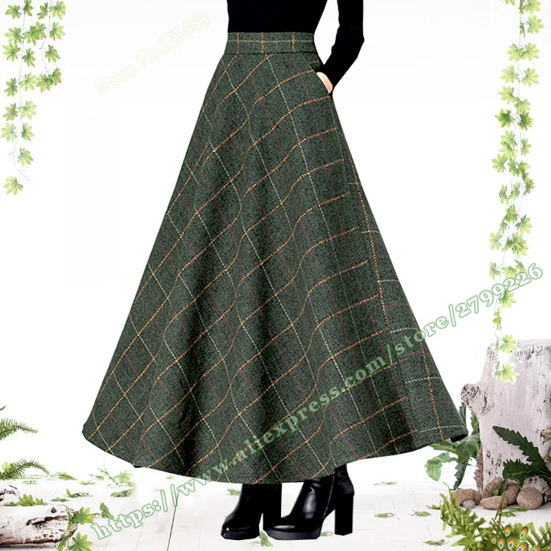 Женская зимняя длинная юбка в клетку, зеленая Повседневная элегантная плотная Шерстяная трапециевидная юбка в стиле ретро, модель 2022, XL, 8XL