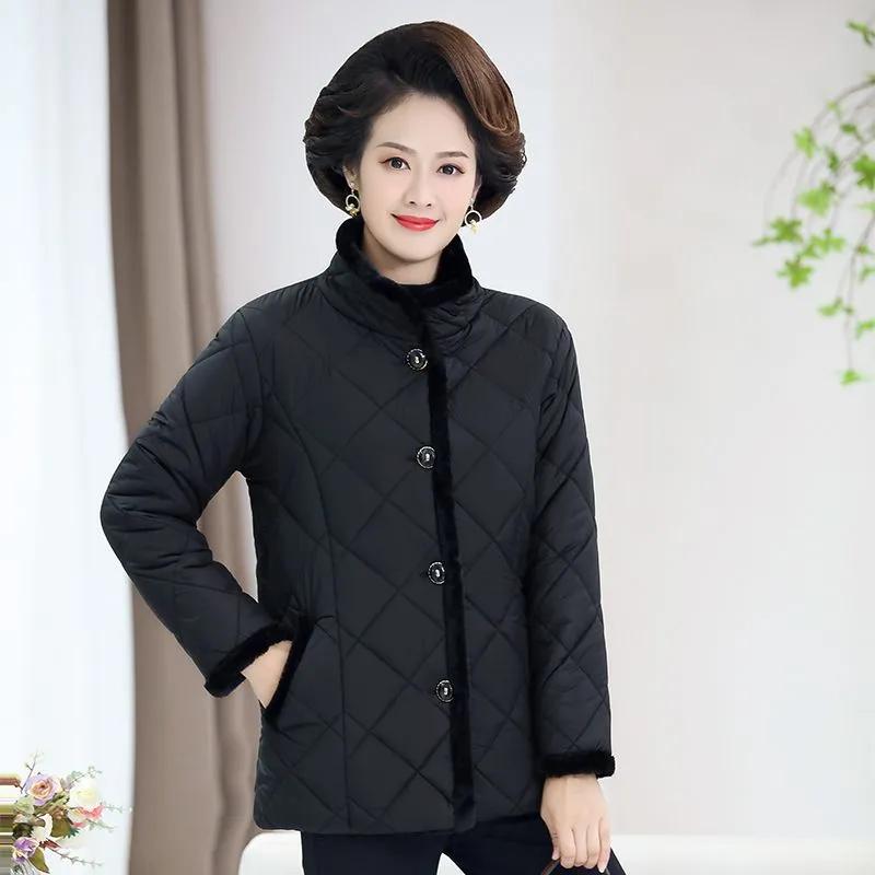 Женская зимняя куртка с бархатной подкладкой и хлопковой подкладкой, воротник из хлопка с мехом для матерей, сохраняющая тепло L чёрный