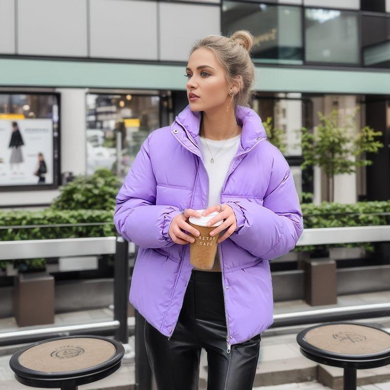 Женская зимняя куртка 2024 года, зимняя женская куртка с высоким воротником, утепленная, теплая, из хлопка, женская, повседневная, парка Pure Callor, женское пальто XXL фиолетовый
