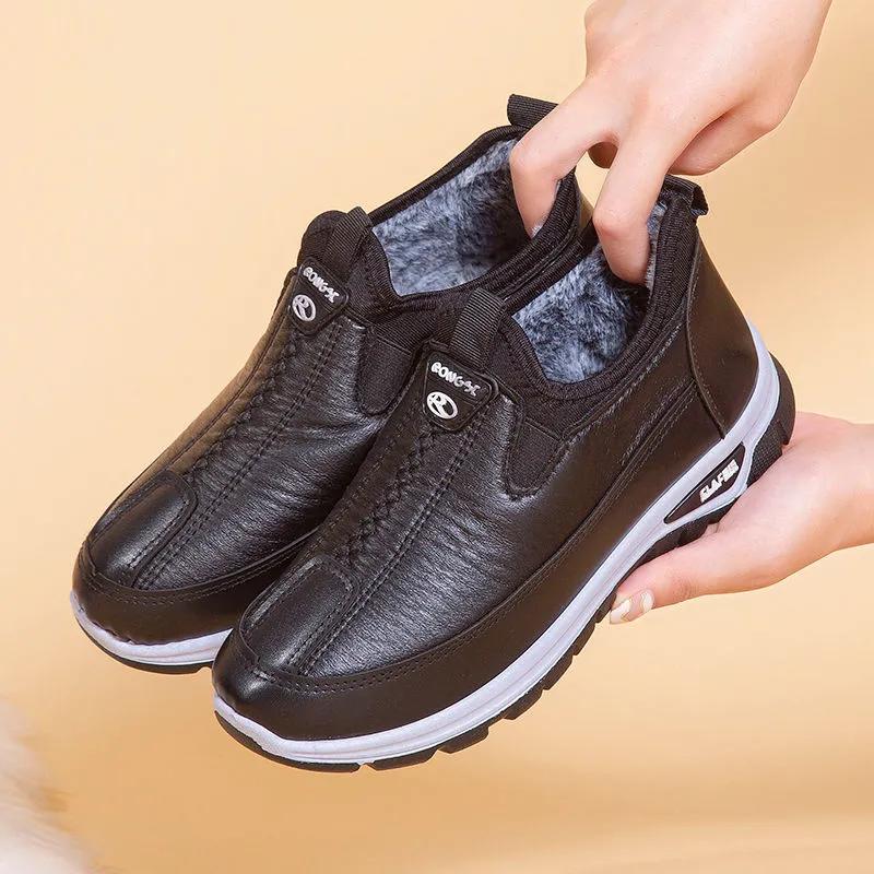 Женская зимняя мягкая и утолщенная водонепроницаемая хлопковая обувь для людей среднего и пожилого возраста, прочная и долговечная теплая обувь, однотонная повседневная спортивная обувь 37 чёрный