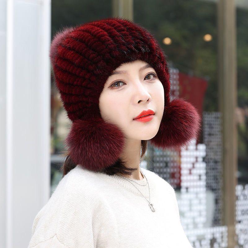 Женская зимняя норковая шапка Yutong с помпоном из лисьего меха и защитой для ушей One Size
