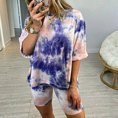 Women S Sets Clearance Womens Tie-Dye Pajamas Set Half Sleeve Tops Shorts Loungewear Sets Sleepwear Pink Xl