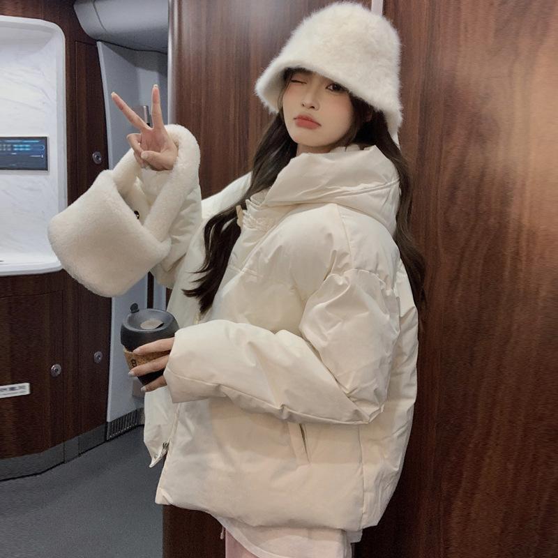 Женская зимняя однотонная утолщенная теплая одежда для студентов, свободная повседневная короткая куртка XXS белый