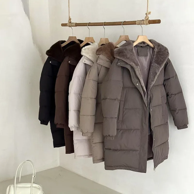 Женская зимняя парка средней длины с капюшоном, зимнее стеганое пальто, большая съемная молния с капюшоном, теплая верхняя одежда, пуховик длиной до колена