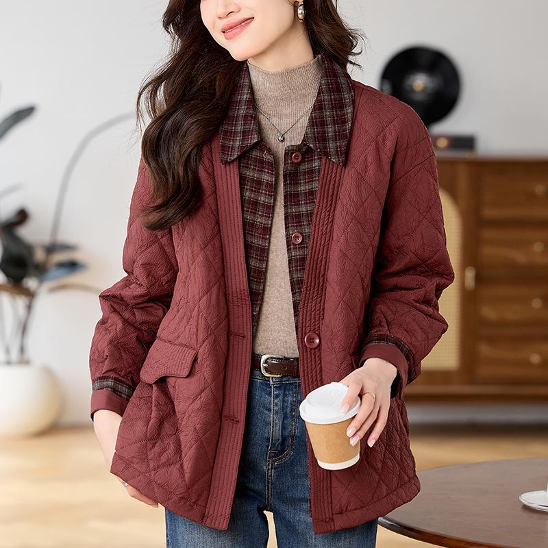 Женская зимняя свободная стеганая хлопковая куртка 2024 года с отложным воротником - Большой размер, Пальто, омолаживающее для мам среднего возраста XL for 130-145 jin