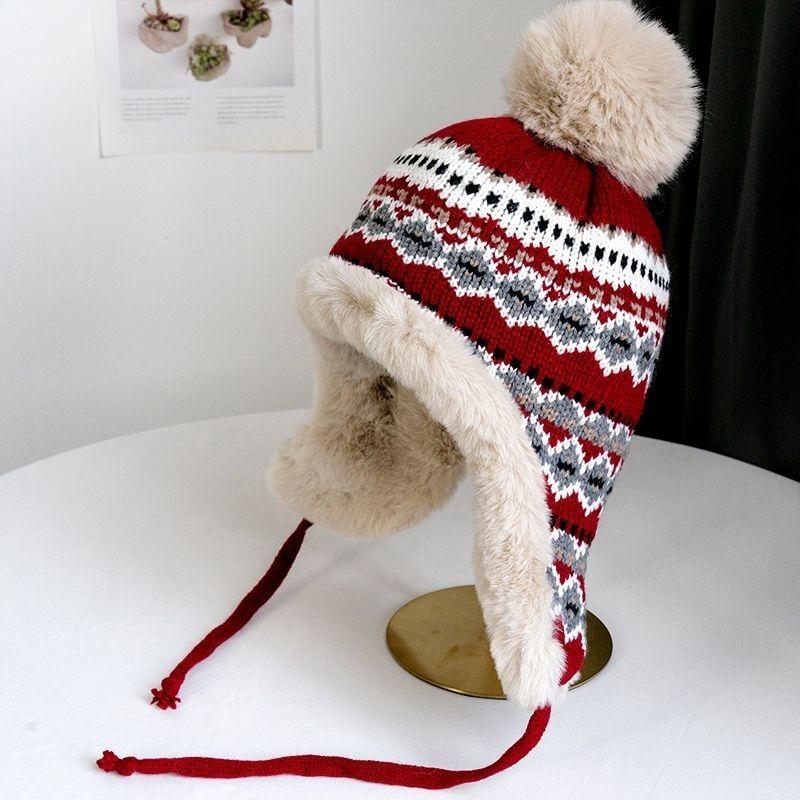 Женская зимняя теплая вязаная шапка для девочек Kawaii искусственный мех плюшевая шапка для езды на велосипеде снег лыжи шапки One size красный