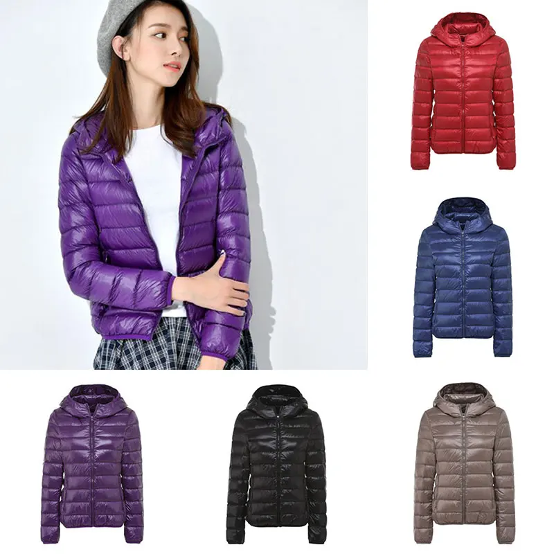Женская зимняя теплая одежда с капюшоном, легкая приталенная куртка-пуховик с капюшоном, однотонная модная универсальная полихроматическа...