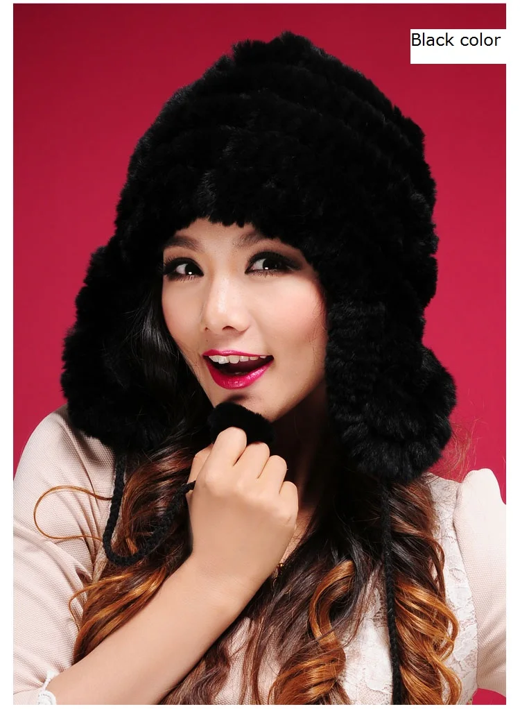 Женская зимняя трикотажная шапка с русским мехом, черная, белая, красная, коричневая, серая, теплая брендовая шапка для женщин, модель 654