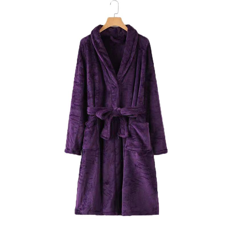 Женская зимняя фланелевая ночная рубашка с коралловым флисом, длинный банный халат и плотная бархатная ночная рубашка 2XL фиолетовый