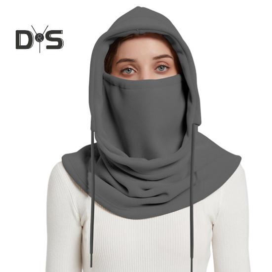 Женская зимняя шапка-балаклава со встроенным шарфом, толстая, теплая, флисовая, ветрозащитная, регулируемая, полная защита, для путешествий на открытом воздухе, для езды на велосипеде в холодную погоду темно-серого