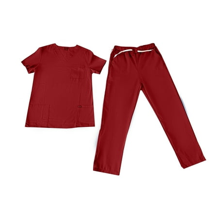 Medical Scrub Set Unisex V-Neck Top and Pants 65% Polyester 35% Cotton Blend