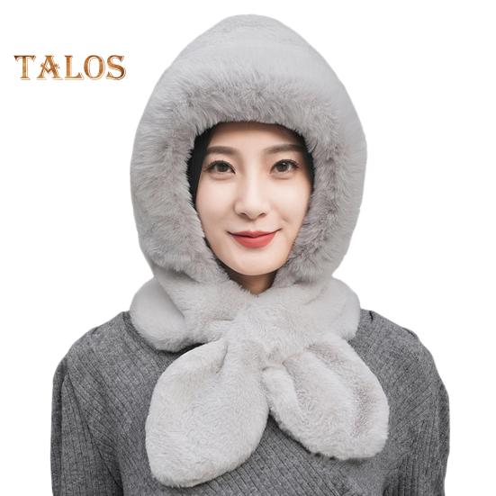 Женская зимняя шапка со встроенным шарфом, толстая теплая, из искусственного меха кролика, однотонная, полная защита, для езды на велосипеде, путешествий, холодной погоды светло-серый