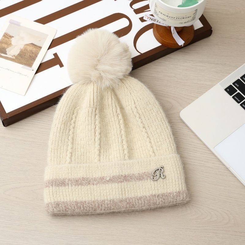 Женская зимняя шапка, шерстяная вязаная шапка с помпоном, утолщенная теплая защита ушей, ветрозащитная шапка от холода one size бежевый