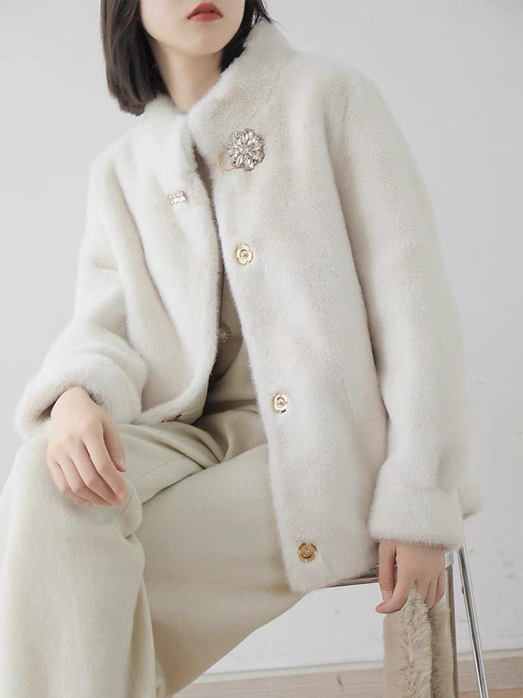 Женская искусственная норковая шуба, осенне-зимняя короткая меховая куртка, экологически чистый мех, ветро- и морозостойкая XXL белый