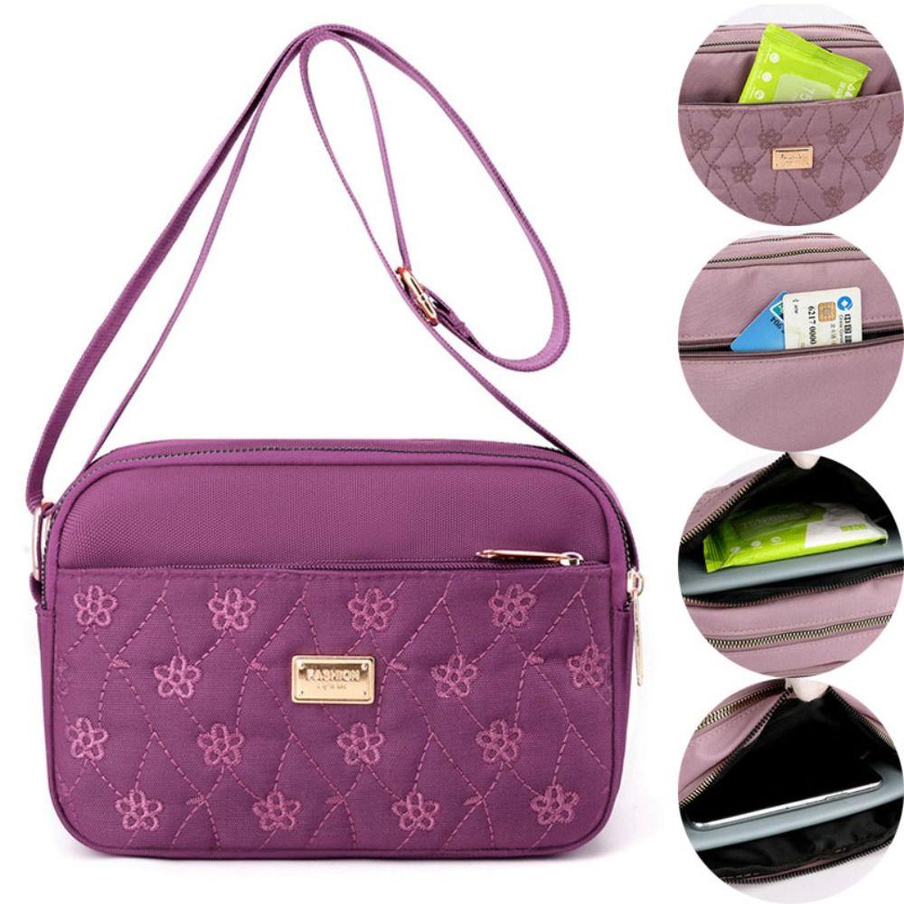 Женская квадратная сумка на плечо большой емкости с вышивкой на молнии, нейлоновые сумки, кошелек для монет