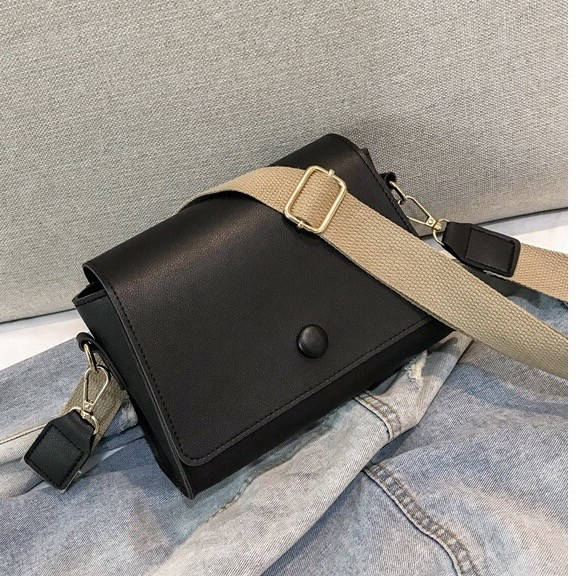 Женская сумка через плечо с кнопкой на широком ремне