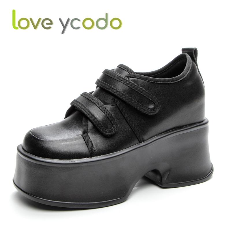Женская кожаная повседневная обувь Love Ycodo, очень толстая простая удобная студенческая обувь толщиной 8 см на весну и осень 33 чёрный