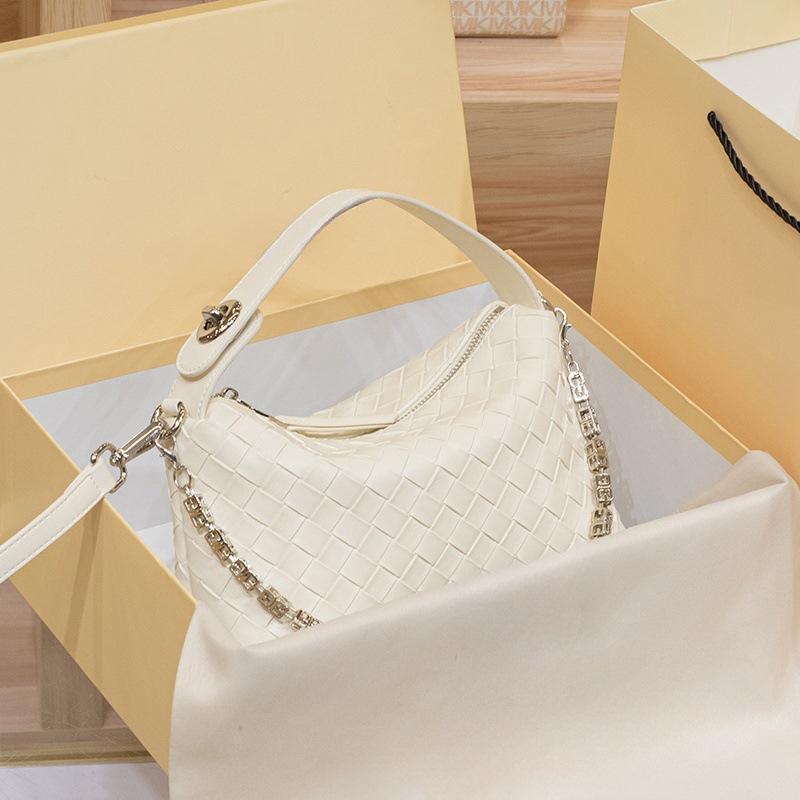 Женская кожаная сумка, женская сумка, элитная легкая роскошь, модная плетеная сумка-подушка на одно плечо через плечо белый
