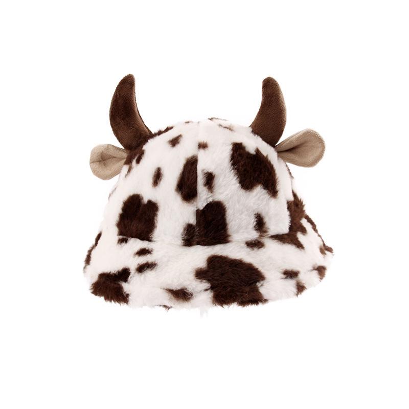 Женская корейская модная плюшевая панама с принтом коровы для осени и зимы - Толстая теплая роговая рыбацкая модель One Size кофейный