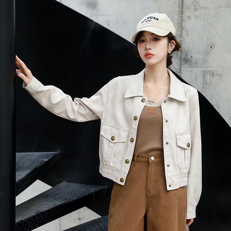 Женская короткая кожаная куртка черного цвета, новая модная модель весна-осень, маленькая приталенная мотоциклетная кожаная куртка XL бежевый