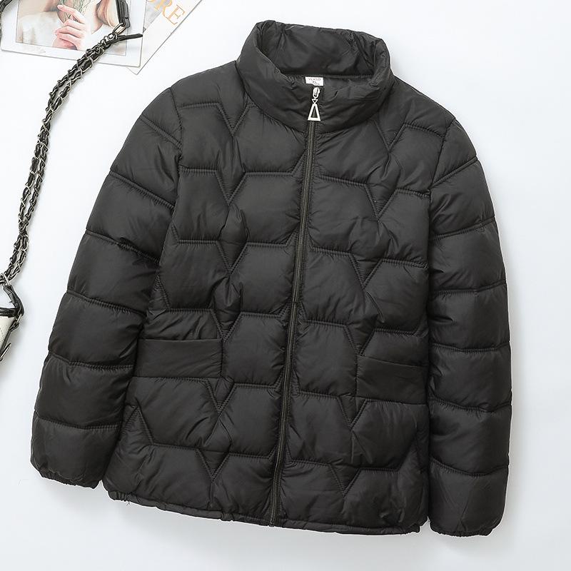 Женская короткая легкая хлопковая куртка - Стиль Осень/Зима 2023, Приталенное стеганое пальто для мам среднего и пожилого возраста 5XL for 75-82.5 kg чёрный