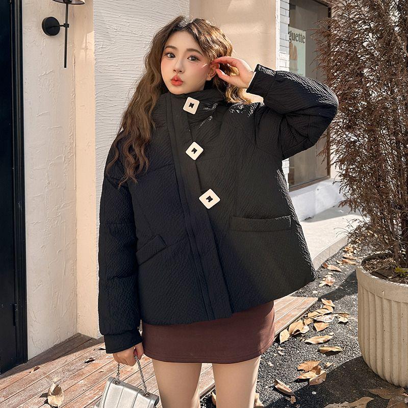 Женская короткая пуховая куртка свободного кроя с капюшоном, зимняя утолщенная маленькая куртка S чёрный