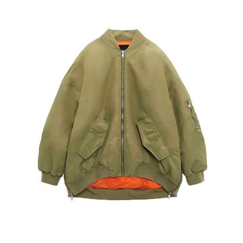 Женская куртка-бомбер с круглым вырезом, свободная, с косыми карманами и молнией, на весну и осень, куртка большого размера, пальто, шикарная женская верхняя одежда L оливковое зеленый