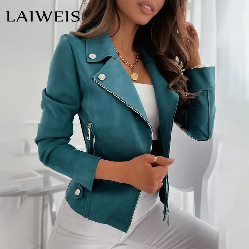 Женская куртка на молнии LAIWEIS, осенне-зимняя новая однотонная модная кожаная куртка с длинным рукавом, коричневая облегающая куртка в стиле ...