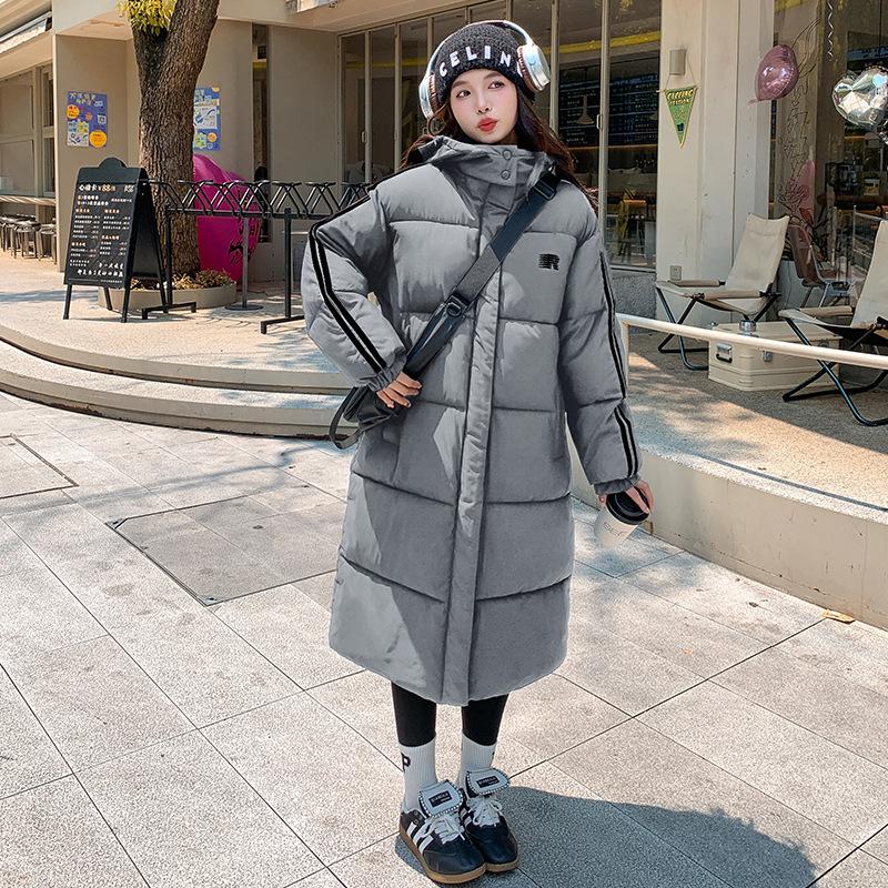 Женская куртка средней длины и длинная на пуху и хлопке, 2025 зима, новый стиль, выше колена, свободная, большого размера, толстая хлопковая куртка для студентов L серый