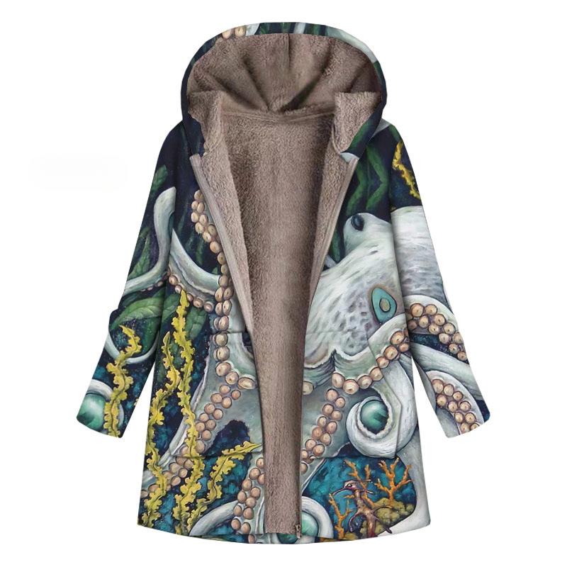Женская куртка с капюшоном с цветочным принтом и животными на осень-зиму, винтажное пальто большого размера с теплым стеганым принтом, женские парки 7XL жёлтый/зелёный