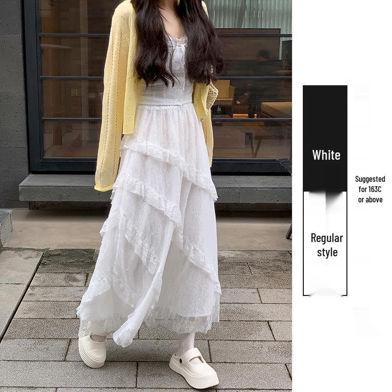 Женская летняя белая сетчатая кружевная юбка А-силуэта с завышенной талией M