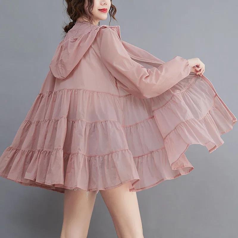 Женская летняя куртка средней длины с капюшоном, однотонная, тонкая, солнцезащитная, с простым дизайном в стиле темперамент S розовый