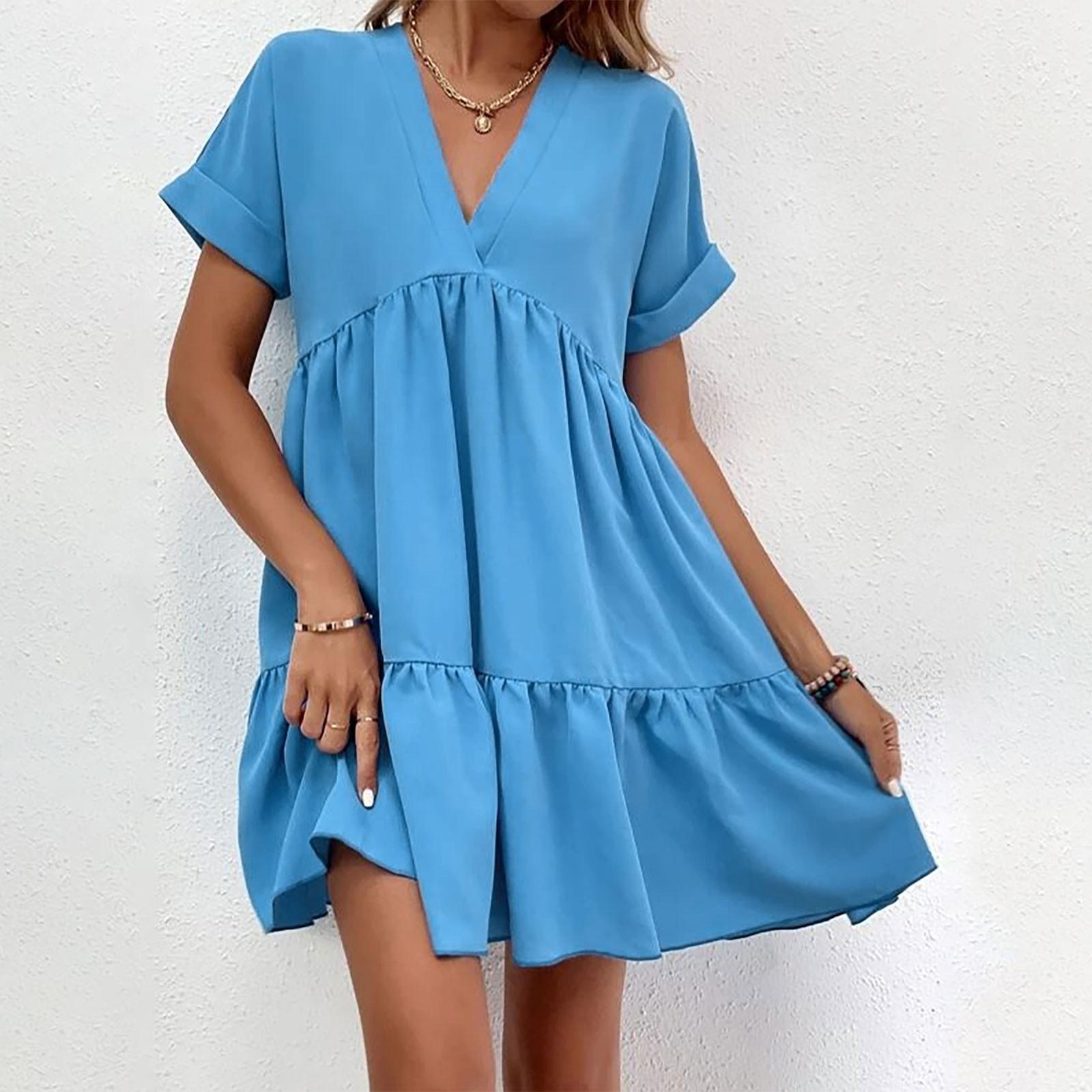 Женская летняя мода, однотонное сексуальное платье с v-образным вырезом и коротким рукавом, пляжное струящееся вечерние макси L