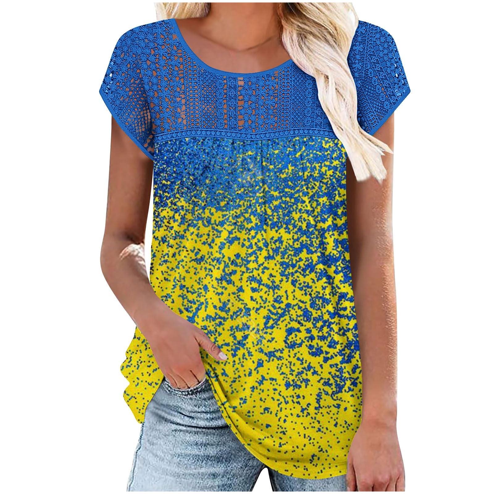 Женская летняя модная дышащая и удобная кружевная футболка с рюшами по краям XL жёлтый